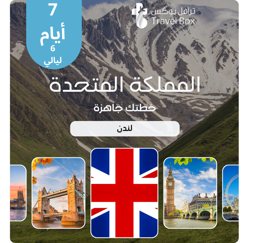 استعد لاكتشاف جمال المملكة المتحدة، من شوارع لندن النابضة إلى ريف اسكتلندا الخلاب، مع ملف Travel Box التفاعلي المصمم ليجعل رحلتك منظمة، مريحة، وآمنة 💼
